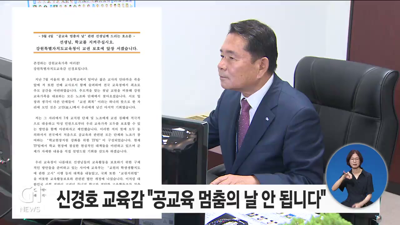 교육현장에서 다음달 4일을 '공교육 멈춤의 날'로 하자는 논의가 진행되는 것과 관련해, 신경호 교육감이 자제를 당부하고 나섰습니다.