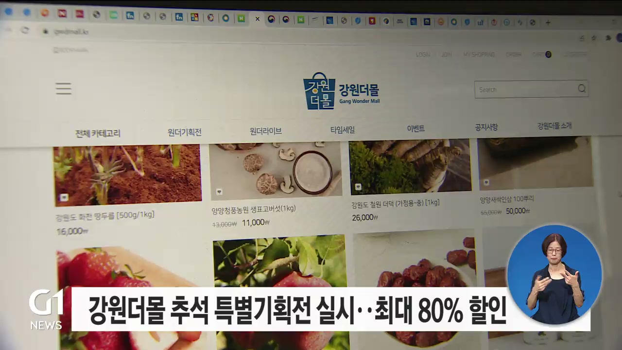 강원더몰 추석 특별기획전 실시..최대 80% 할인