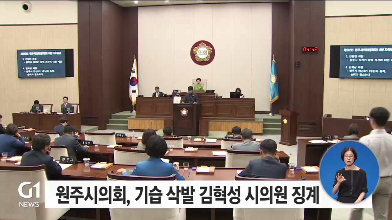 원주 아카데미극장 철거 예산안에 반발하며 5분 자유 발언 중 기습 삭발한 김혁성 원주시의원에게 시의회 윤리특별위원회가 출석정지 30일의 징계 처분을 결정했습니다.