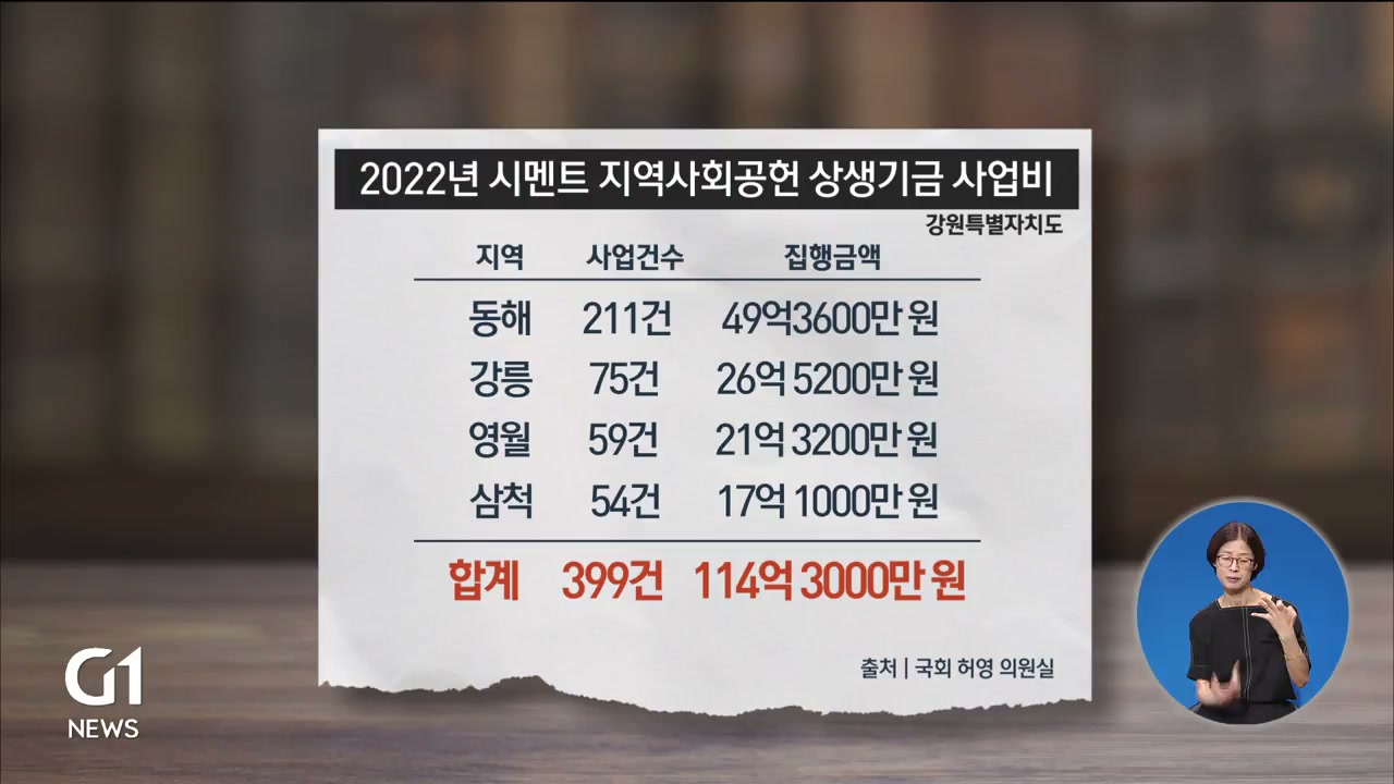 그래서 시멘트 생산 기업들이 '지역사회 공헌 상생기금'을 만들었는데요,