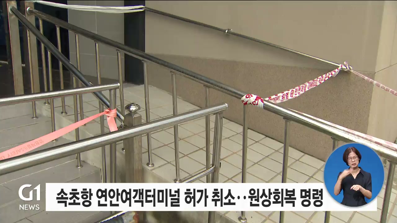 강원특별자치도는 시행사의 선박 미확보 등을 사유로 항만법 등에 따라 속초항 연안여객터미널 시행 허가와 실시계획 승인 취소 처분을 내리고, 공사 중인 시설물을 원상회복 조치하라고 명령했습니다.