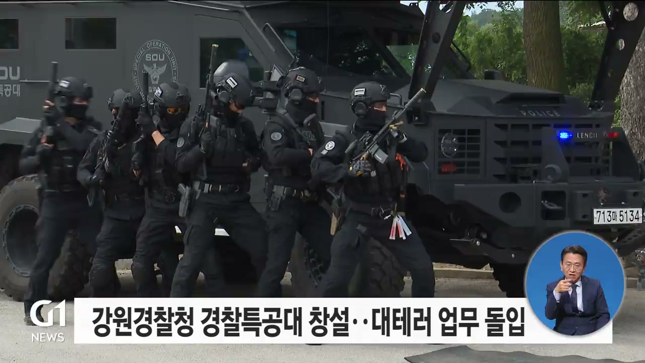 강원경찰특공대가 어제(21일) 춘천시 신북읍 임시청사에서 창설식을 갖고 본격적인 대테러 업무에 돌입했습니다.