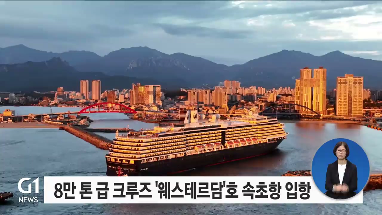 지난 3월에 이어 속초항에 8만 2천톤급 크루즈 여객선 '웨스테르담'호가 입항했습니다.