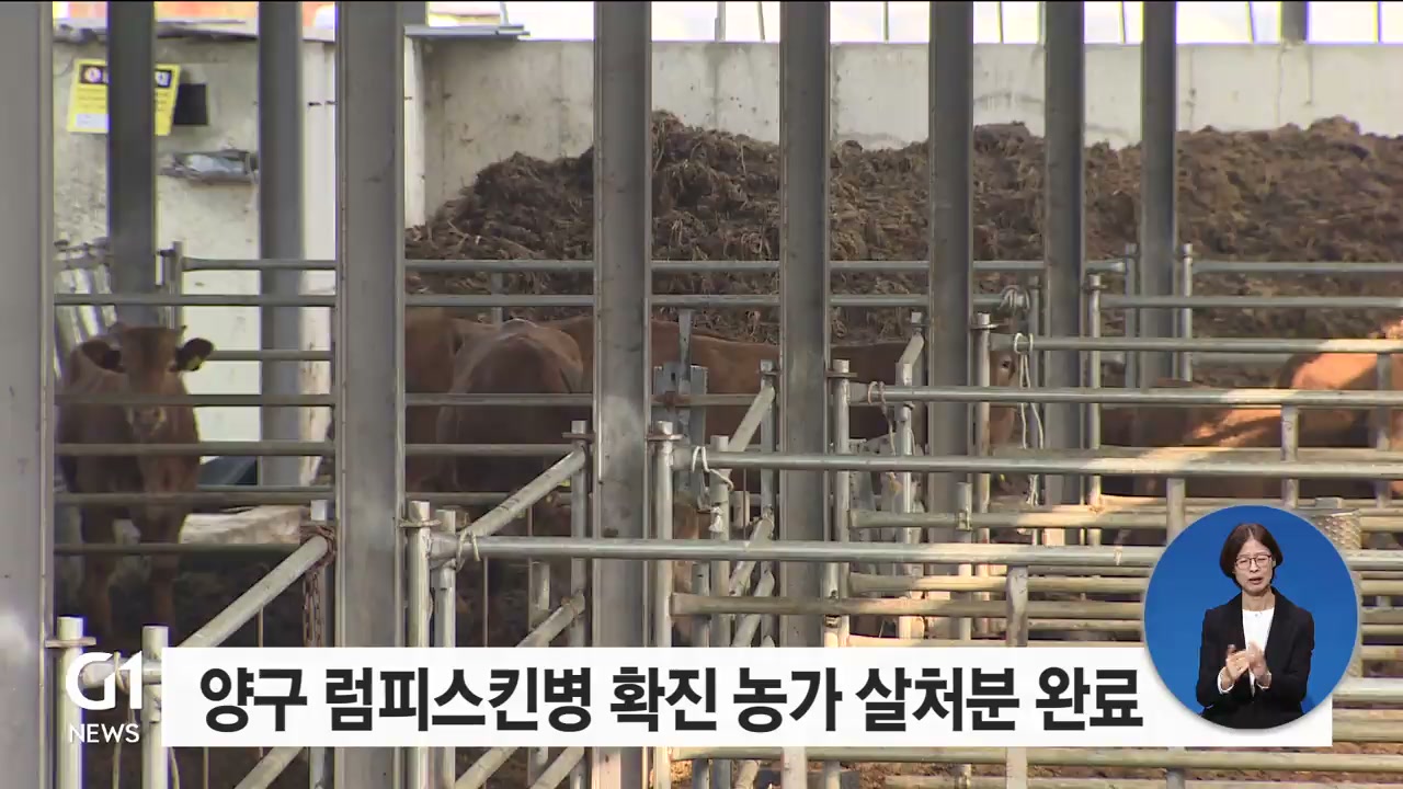 양구군은 럼피스킨병 확진 한우농가의 소 30마리에 대한 긴급 살처분을 완료했다고 밝혔습니다.