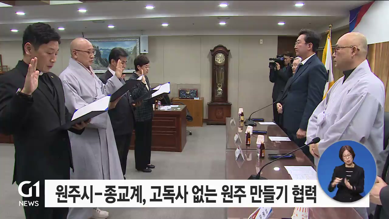 원주시와 종교계는 어제(7일) 원주시청에서 업무협약을 맺고 고독사 없는 원주 만들기에 협력하기로 했습니다.