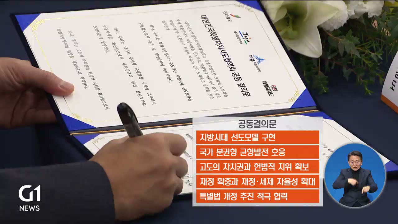 실질적 협력을 통해 특별자치도 공동 과제와 현안 해결에 힘을 모으겠다는 취지입니다.