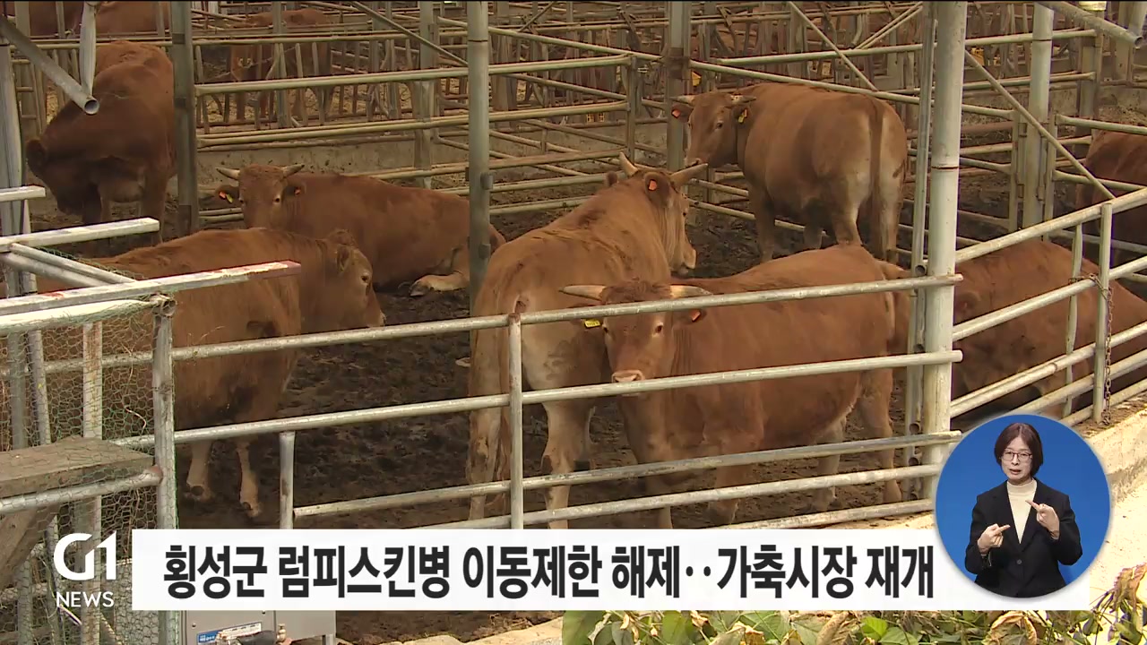 횡성군 럼피스킨병 이동 해제..가축시장 재개장