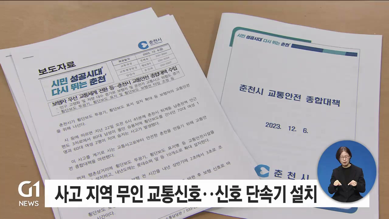 또 해당 지역의 횡단보도 보행 전 시간을 내년 상반기까지 2초에서 3초로 조정하고, 춘천경찰서와 협의해 무인 교통신호와 속도 단속기도 신규 설치합니다.