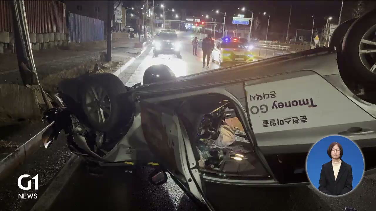 오늘 새벽 춘천서 택시 전복..운전자 다쳐