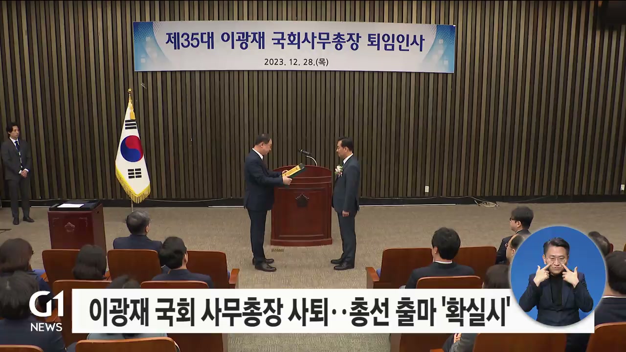 이광재 국회 사무총장이 내년 4월 총선을 앞두고 어제(28일) 퇴임식을 갖고 공식 사퇴했습니다.