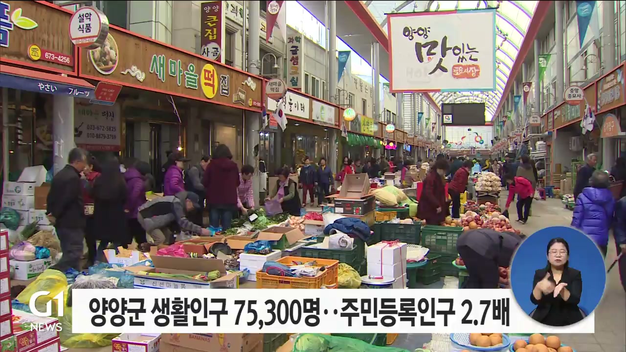 양양군 생활인구 75,300명..주민등록인구 2.7배