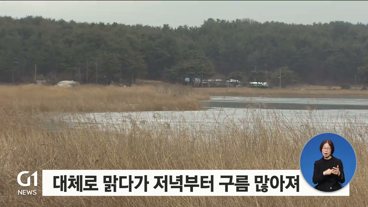 오늘 강원자치도는 대체로 맑다가 저녁부터 구름이 많아지겠습니다.