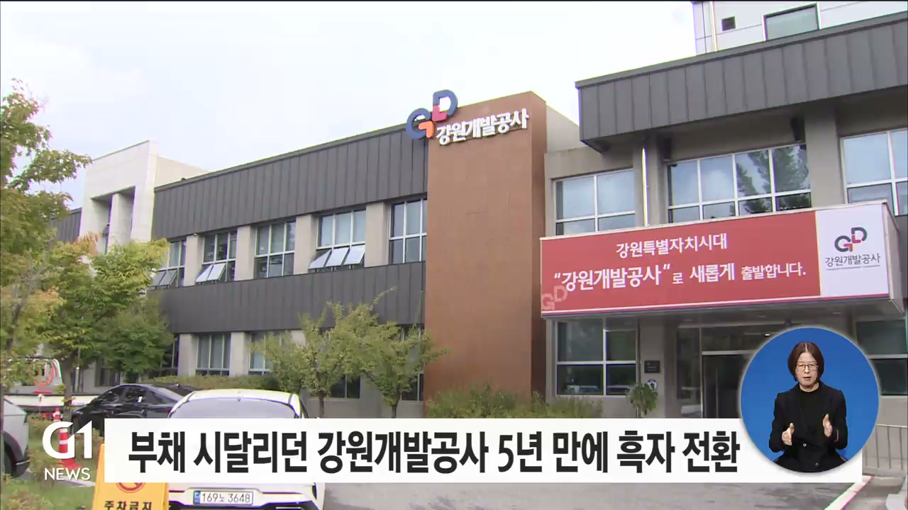 강원개발공사는 지난해 용역비 절감 등을 통해 경영실적이 2018년 이후 5년만에 39억 원 흑자를 기록할 것으로 예상된다고 밝혔습니다.