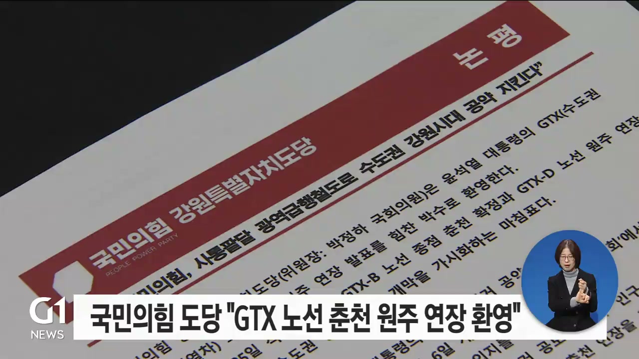국민의힘 강원특별자치도당은 논평을 내고 윤석열 대통령의 GTX 노선 춘천원주 연장 발표를 환영했습니다.