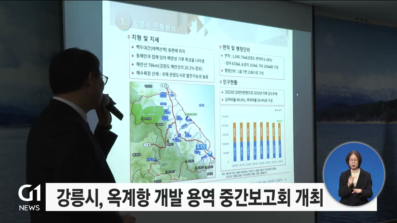 강릉시가 민선8기 역점 추진 현안인 옥계항 개발 사업 추진을 위한 관련 용역 중간보고회를 열고, 향후 청사진을 제시했습니다.