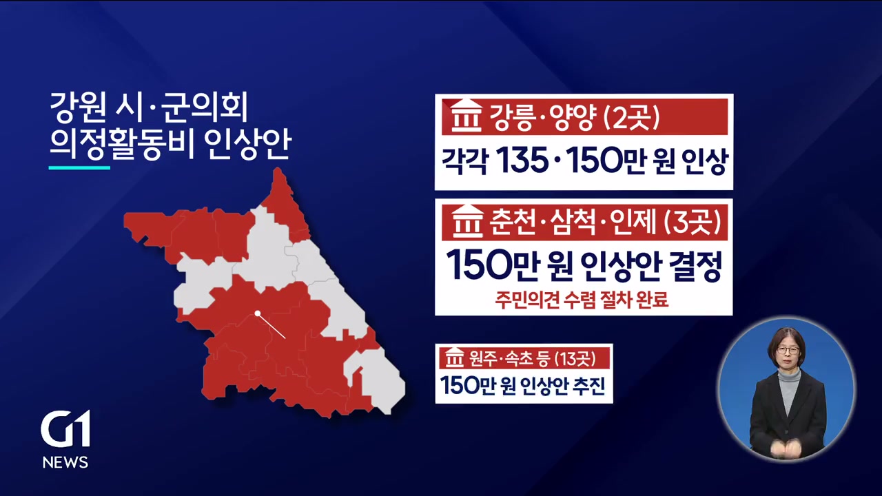 "인상된 의정비 수준에 걸맞는, 청렴한 의정활동이 강원자치도의회 과제로 남게됐습니다. G1뉴스 김이곤입니다."