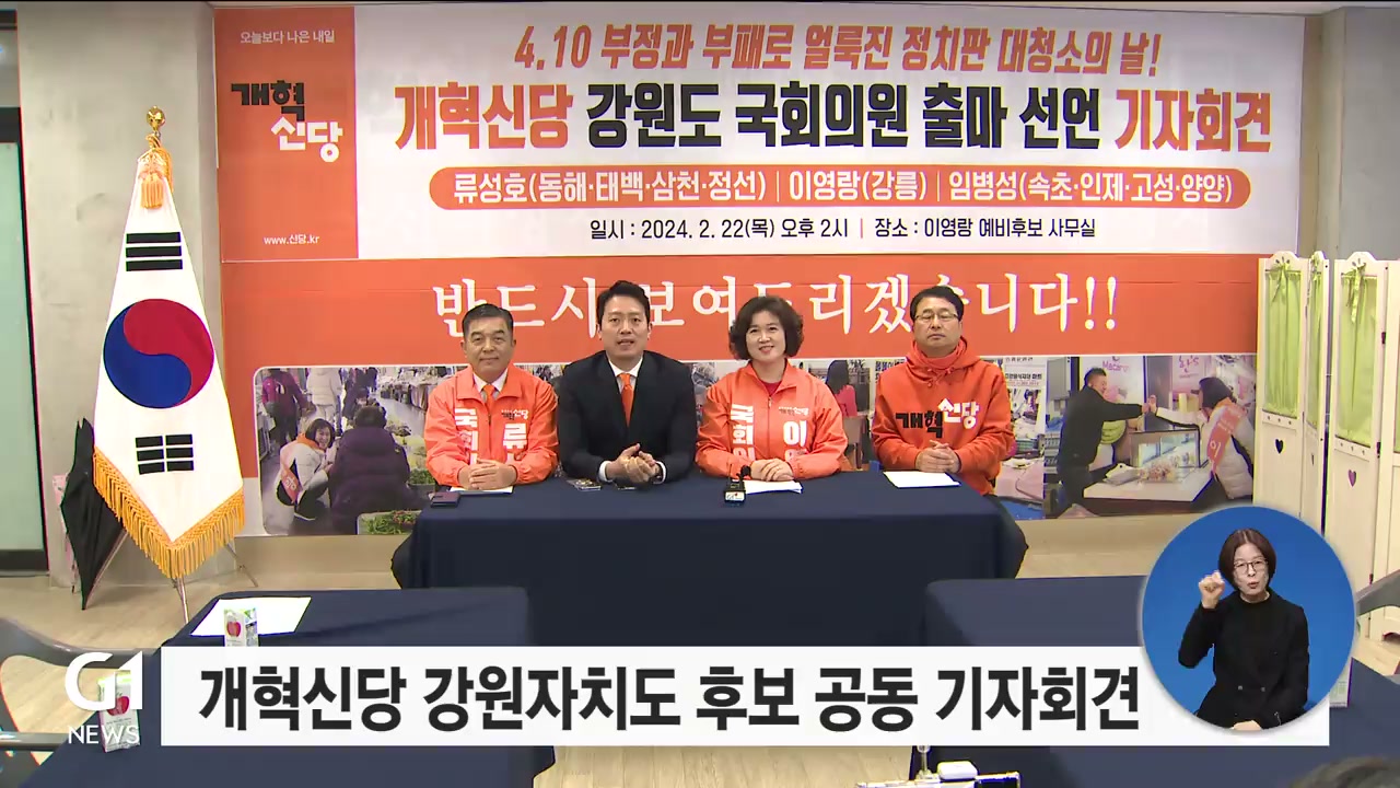 개혁신당은 이기인 중앙당 대변인을 비롯해 강릉 이영랑, 동해태백삼척정선 류성호, 속초인제고성양양 임병성 후보가 참석한 가운데 22대 총선 출마의 변을 밝히고 완주를 다짐했습니다.