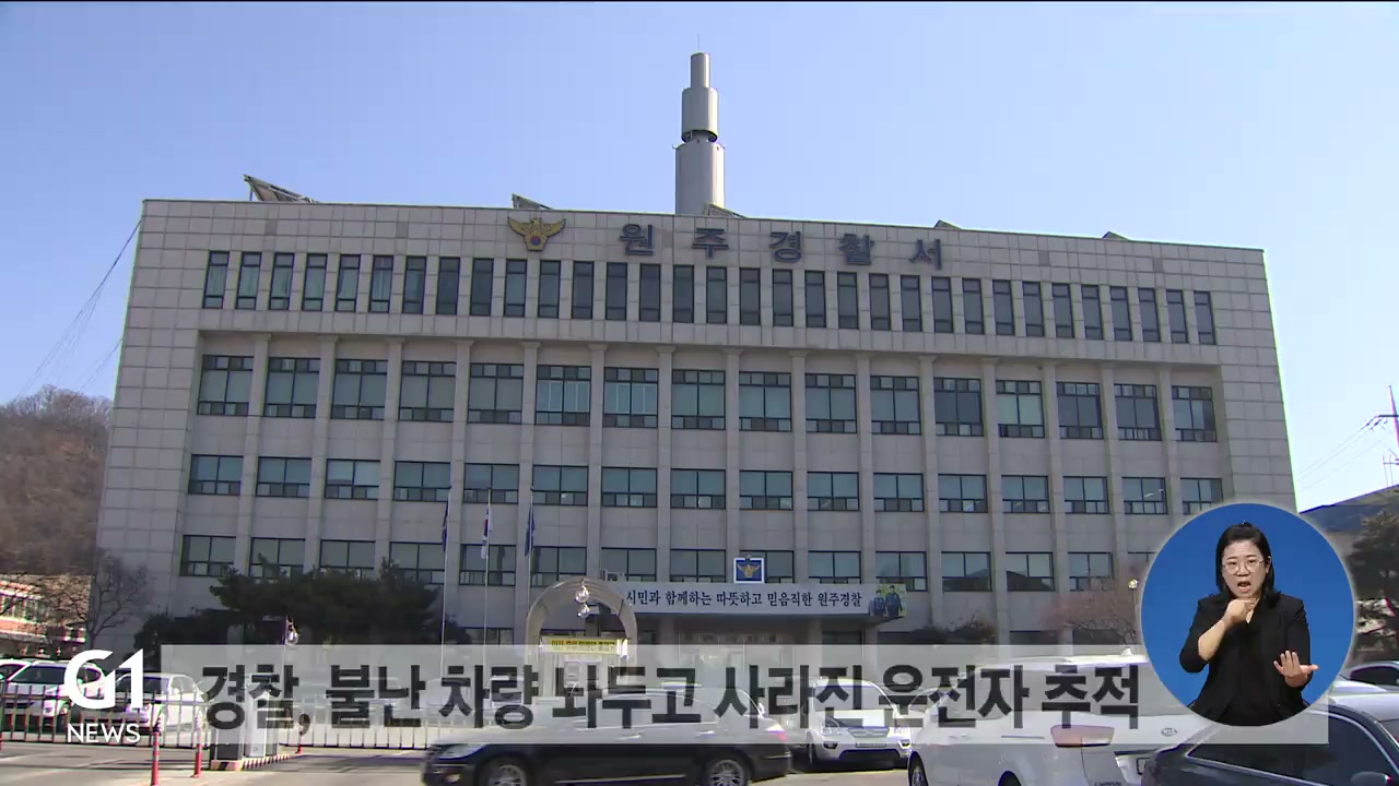 불이 난 차를 놔두고 사라진 운전자를 경찰이 쫓고 있습니다.
