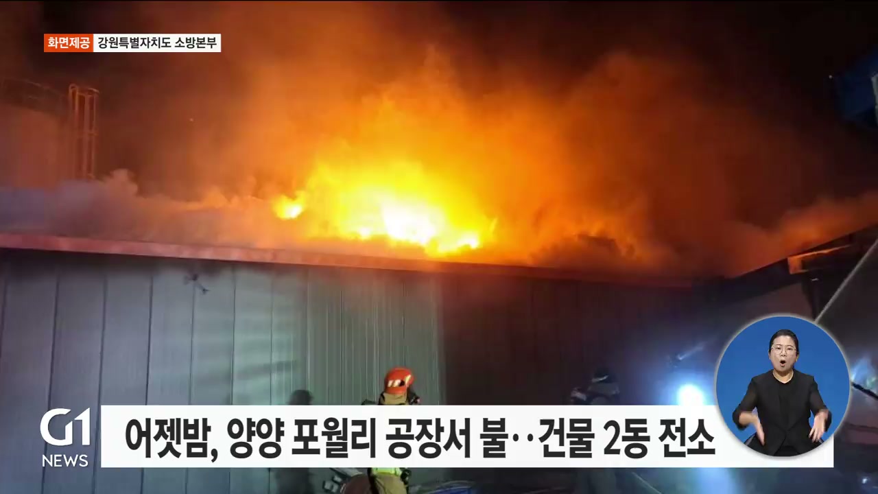 어젯밤, 양양 포월리 공장서 불..건물 2동 전소