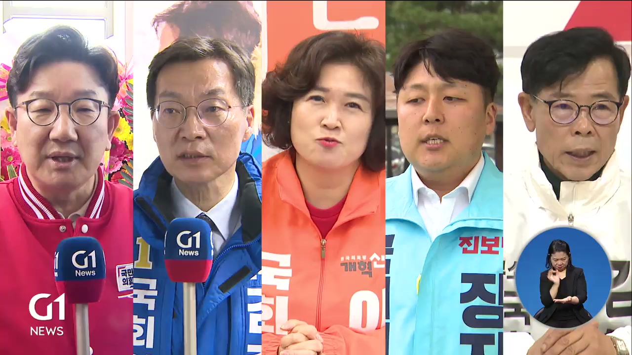 "5명의 후보가 출사표를 던진 강릉선거구는 세갈래로 나뉘어질 보수 진영 표심과 중도층의 선택이 여의도행 주인공을 가를 최대 변수가 될 전망입니다. G1뉴스 김기태입니다."