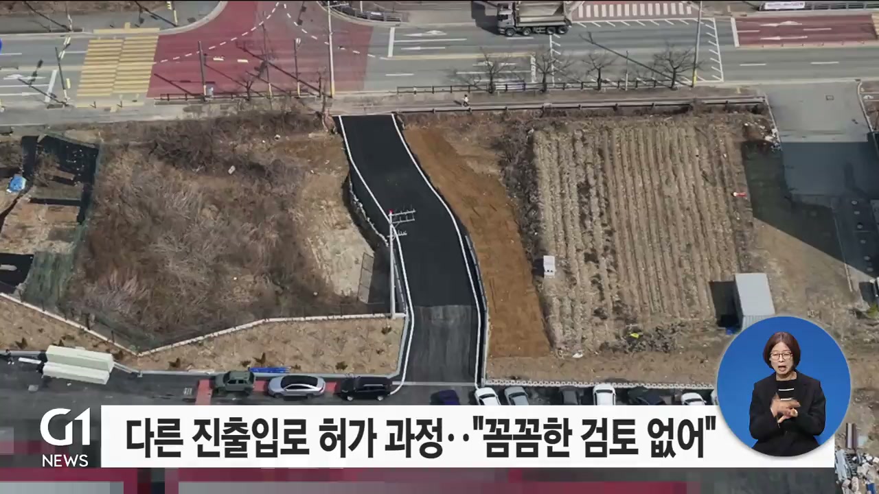 "주변에 토지를 매입을 못 해가지고 어쩔 수 없이 도로 선형이 굽었다 그러더라고요. 회사 측에서 자기네는 그것만 (점용) 받아도 차량 진출입에 크게 지장이 없다고 판단해서.."