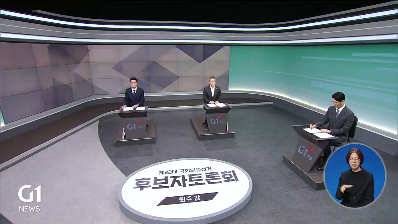 제22대 국회의원 선거를 앞두고 '원주갑 후보자 토론회'가 어제(28일) G1 방송에서 열렸습니다.