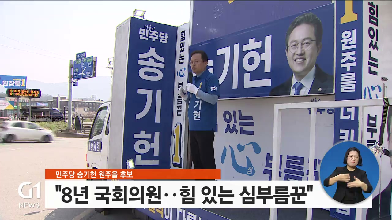 "원주 발전을 위한 많은 예산 제가 확실히 따올 수 있습니다. 그리고 제가 원주시민을 위해서 드린 공약, 약속 반드시 지킬 겁니다."