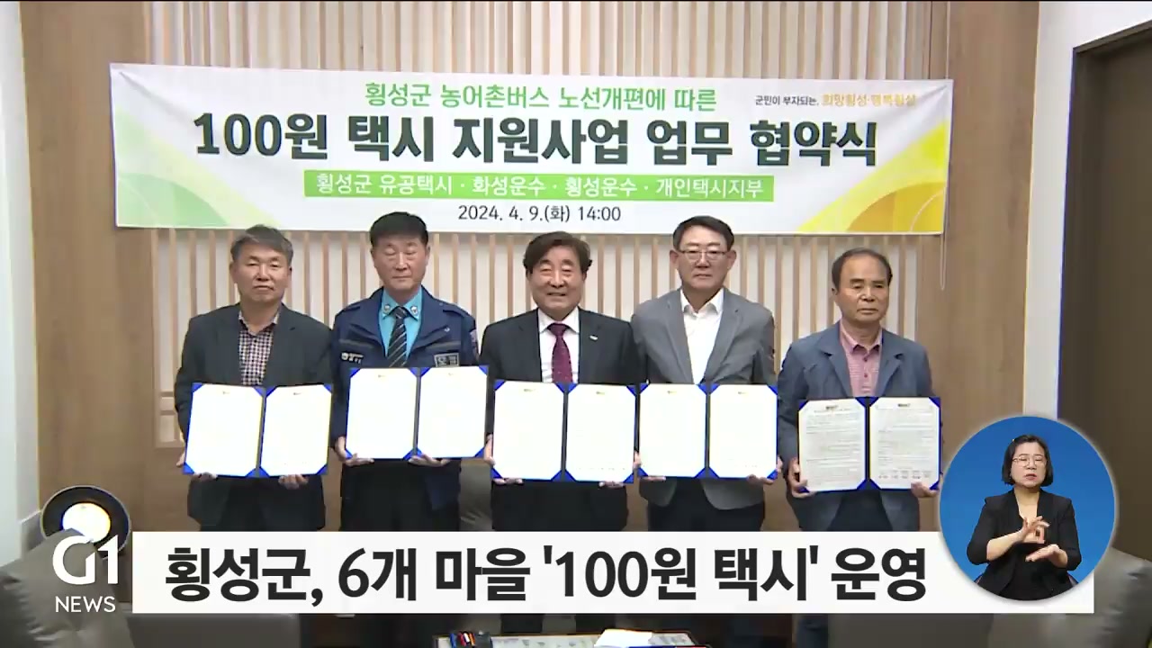 횡성군은 어제(9일) 군청에서 횡성지역 개인택시 회사들과 업무협약을 맺고,