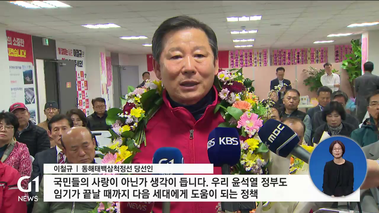 "더욱더 낮은 자세로 국민들의 말씀을 경청하고 함께 공감하도록 하겠습니다. 지금까지 지내온 숙원 사업들 22대 국회에서 반드시 수행해서 4개 군이 재도약의 발판을 만들도록 하겠습니다."