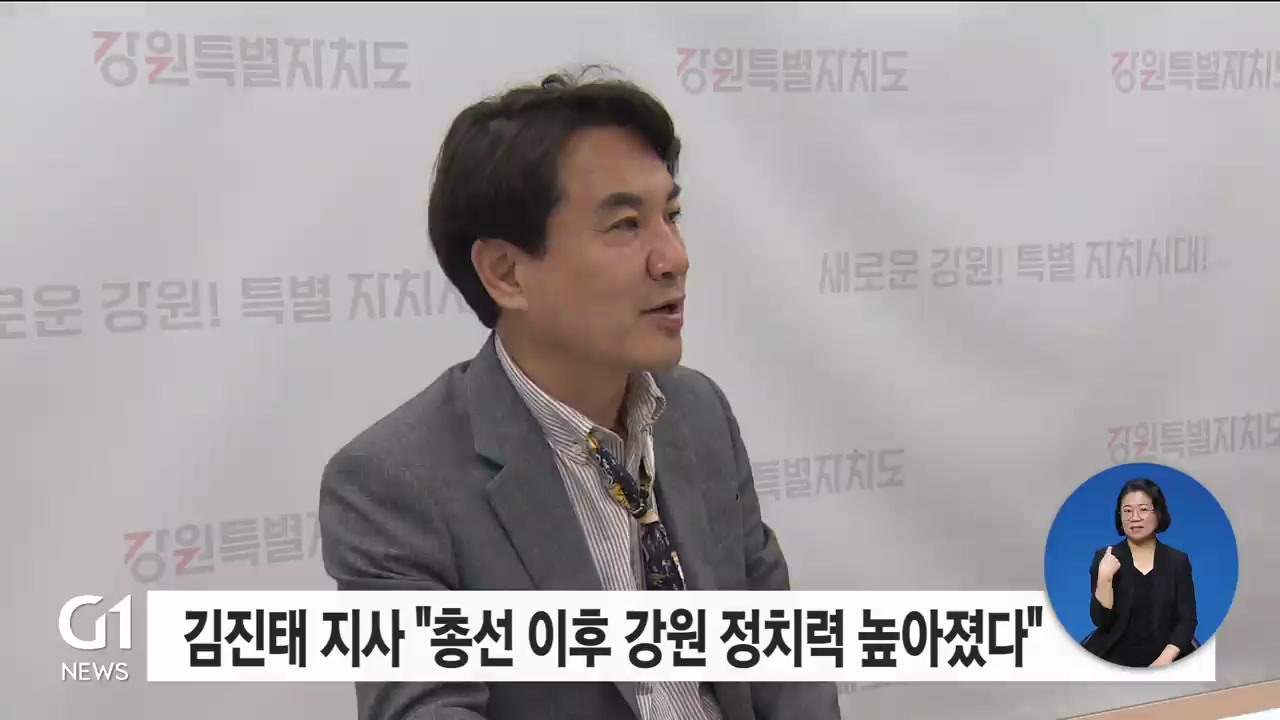 김진태 지사는 어제(15일) 기자브리핑에서 "이번에 당선된 8명의 도 지역구 국회의원들 당선 횟수를 모두 합치면 24선이라며, 평균 3선의 중진 의원들이 돼 강원 정치력이 높아졌다"라고 평가했습니다.