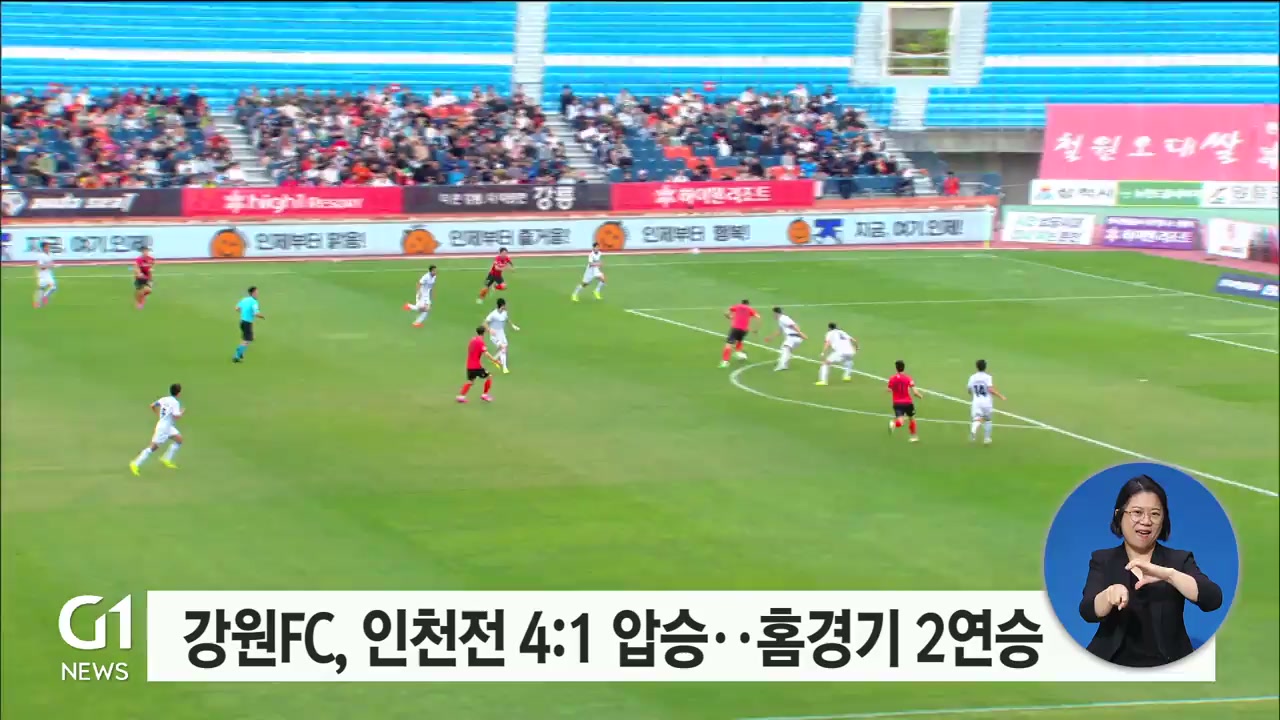강원FC가 브라질 공격수 야고의 해트트릭을 앞세워 인천 유나이티드를 대파하고, 홈경기 2연승을 달성했습니다.