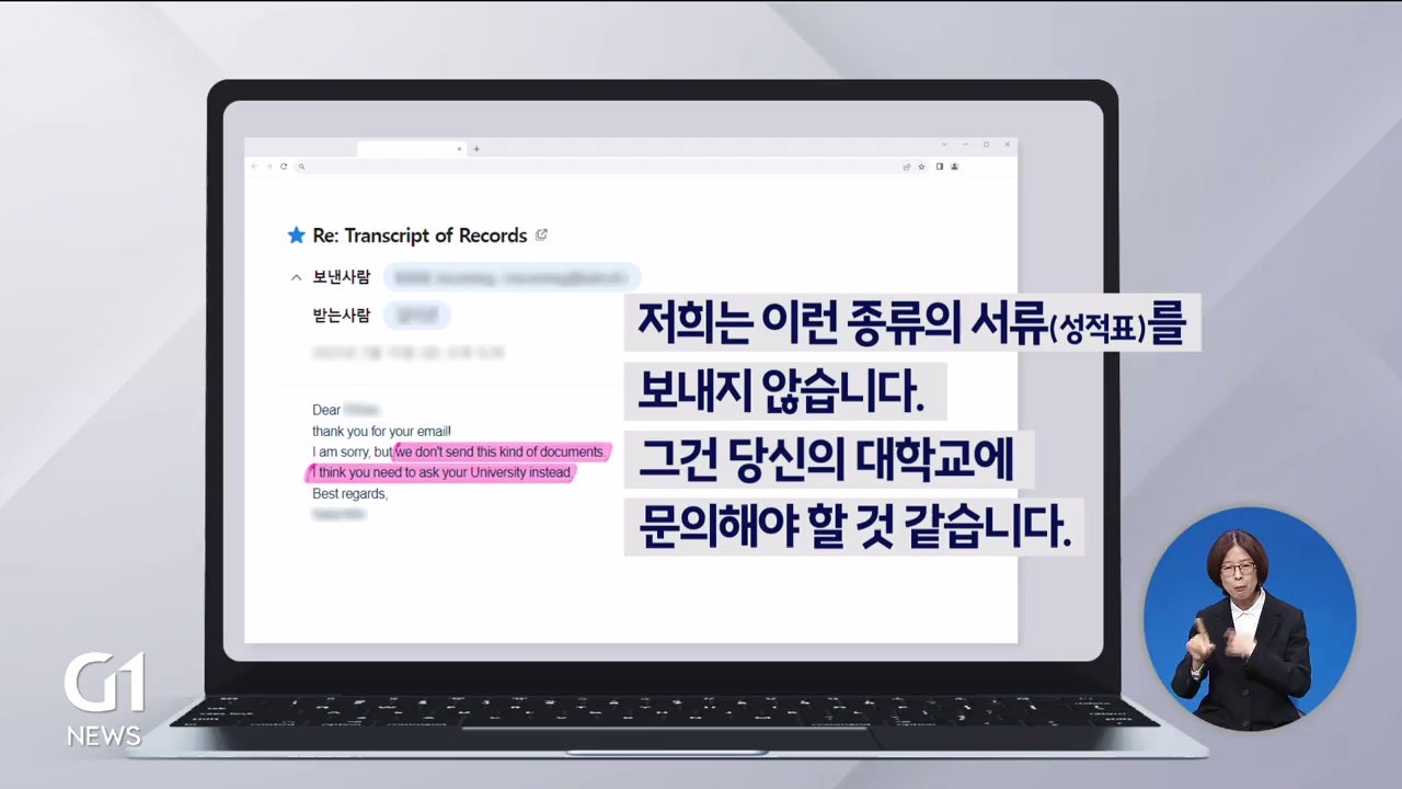 "국내 대학에서는 명확한 기준이 없으니, 학생이 제출한 위조 성적표를 원본으로 믿을 수 밖에 없는 상황입니다."