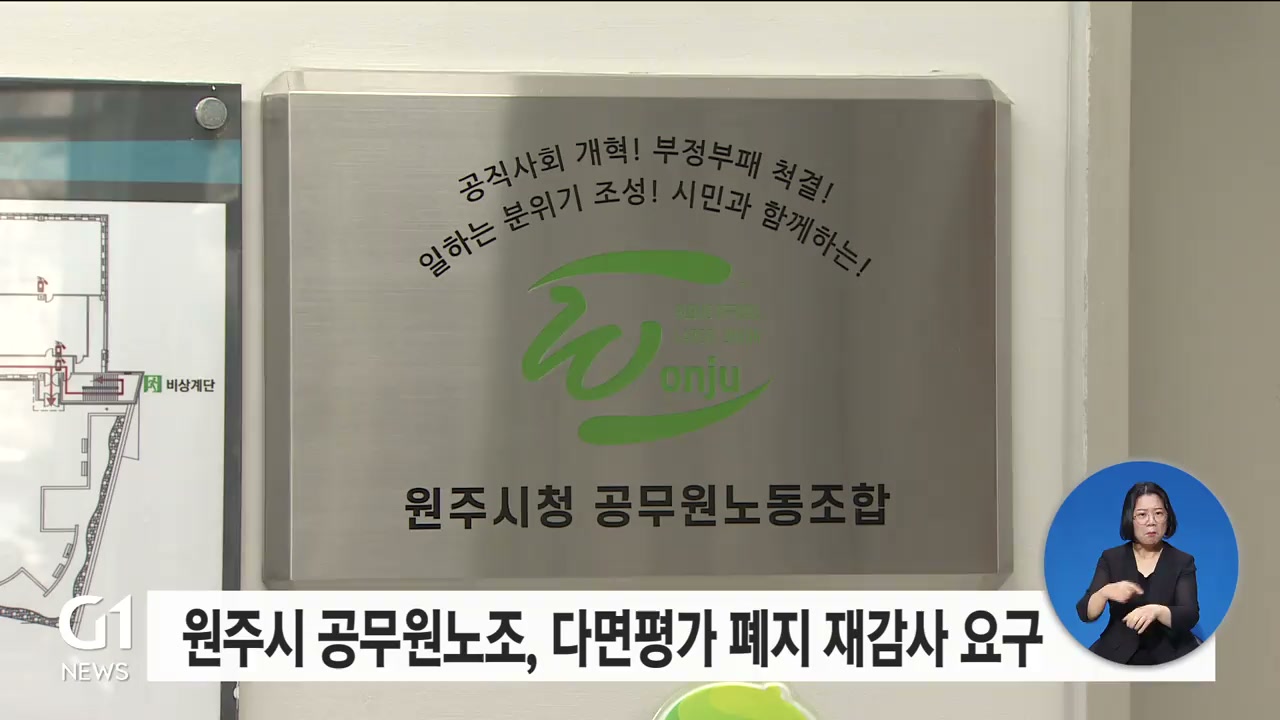 원주시 공무원노동조합이 원주시의 일방적인 다면평가 폐지와 관련해, 강원자치도에 다시 한 번 감사를 요구했습니다.