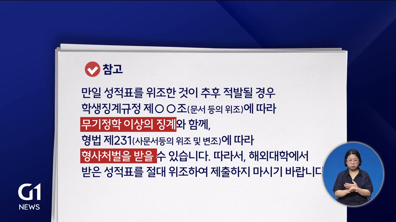 해외대학 시스템에서 내려 받는 경우 등 모든 제출 성적표에 대해 해당 해외 대학에 요청해 원본과 대조할 방침입니다./