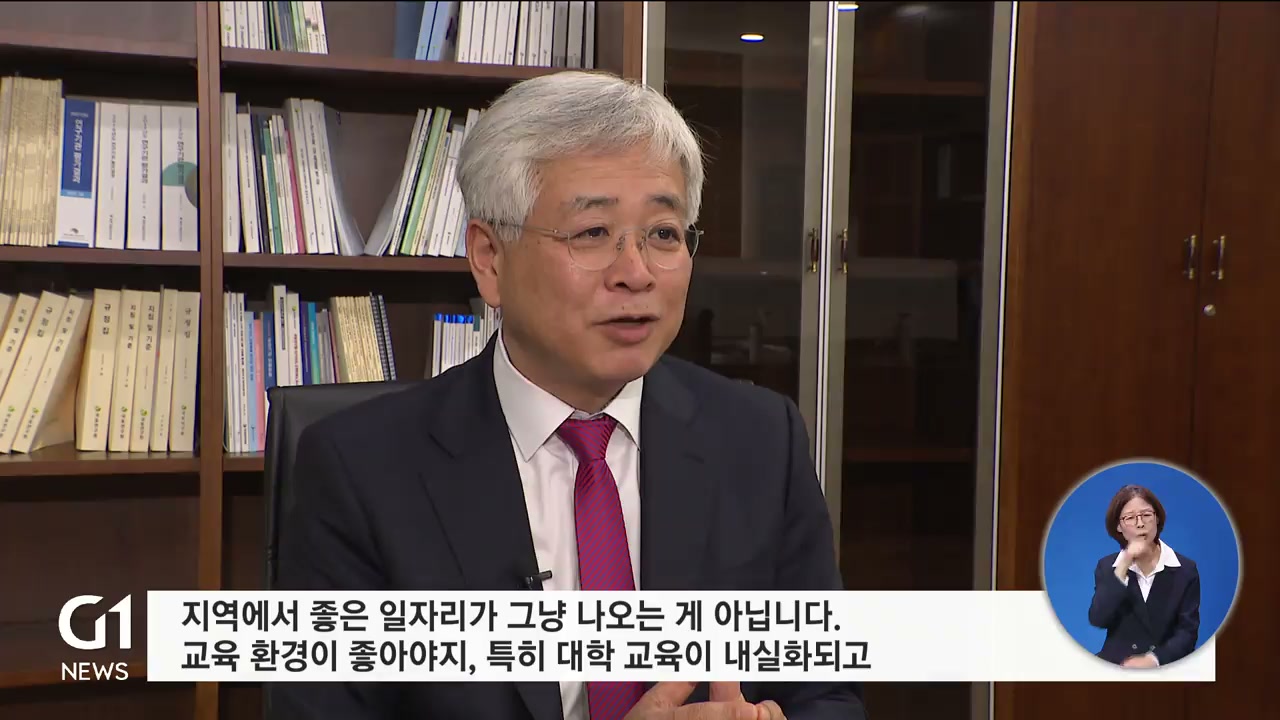 "지역에서 좋은 일자리가 그냥 나오는 게 아닙니다. 교육 환경이 좋아야지, 특히 대학 교육이 내실화되고 훌륭한 인재가 나오고 거기에 또 좋은 일자리가 받쳐주고 이런 분들이 그 지역에 정착하고 이렇게…"
