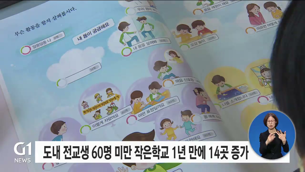학령인구 감소세가 이어지면서 전교생 60명을 채우지 못한 도내 작은 학교가 1년 만에 14곳이나 늘어난 것으로 나타났습니다.