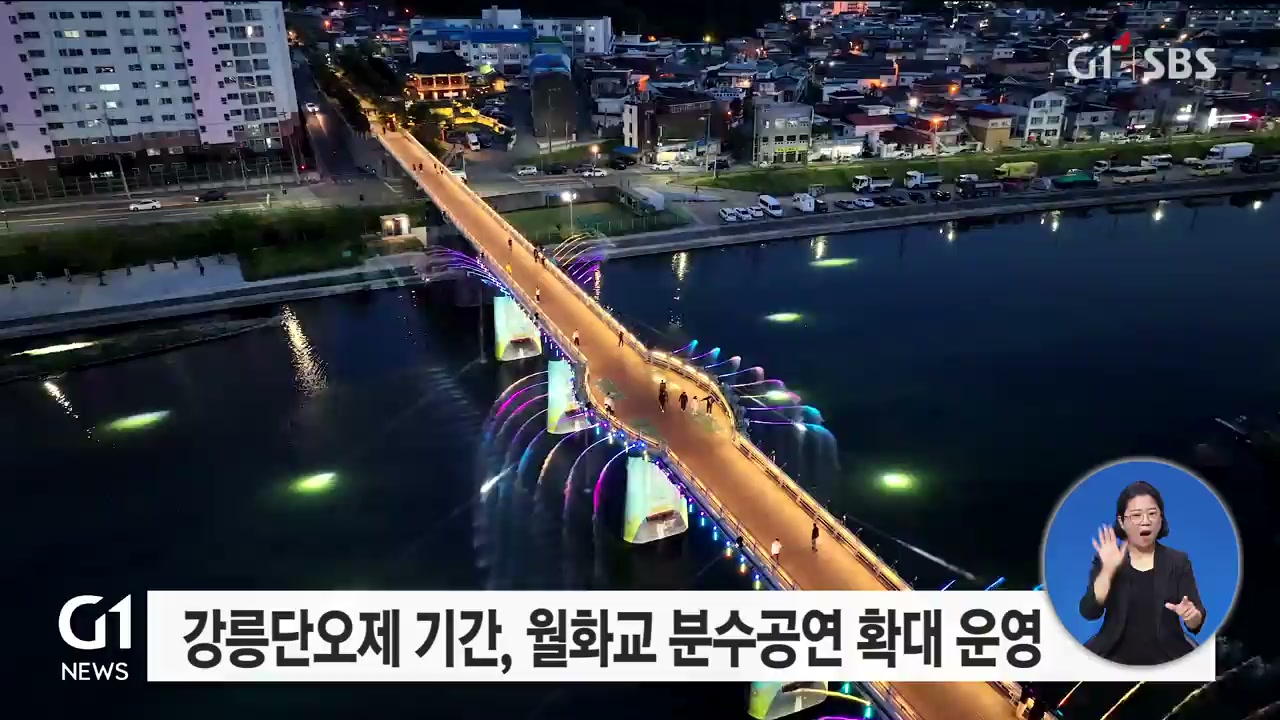 강릉단오제 기간을 맞아 관광객들에게 큰 인기를 끌고 있는 월화교 분수 공연이 확대 운영됩니다.