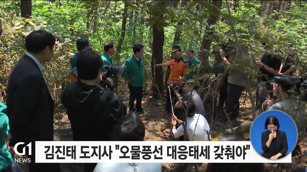 김진태 강원자치도시자가 북한이 날린 오물풍선이 원인으로 추정되는 산불 화재 현장을 찾아 긴급 현장점검을 벌였습니다.