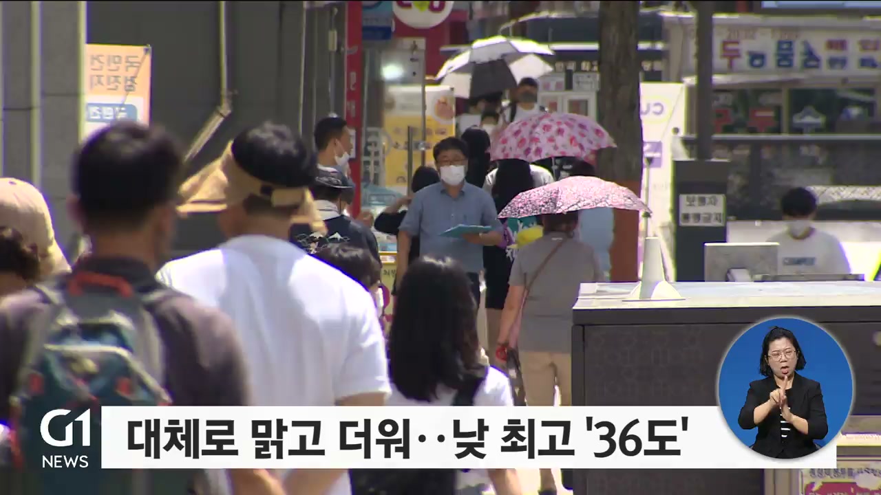 강원자치도는 오늘 대체로 맑은 가운데 대부분 지역에서 최고체감온도가 31도 이상으로 올라 더운 날씨가 이어지겠습니다.