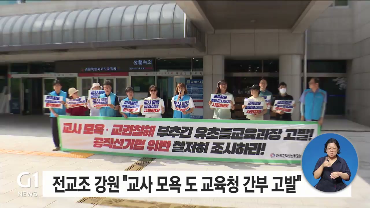 전교조 강원은 어제(15일) 도 교육청 앞에서 기자회견을 열고 "지난 9일 춘천에서 초등생 학부모를 대상으로 열린 연수에서 초등교육 담당 A과장이 대놓고 교사들을 모욕했다"고 비판했습니다.
