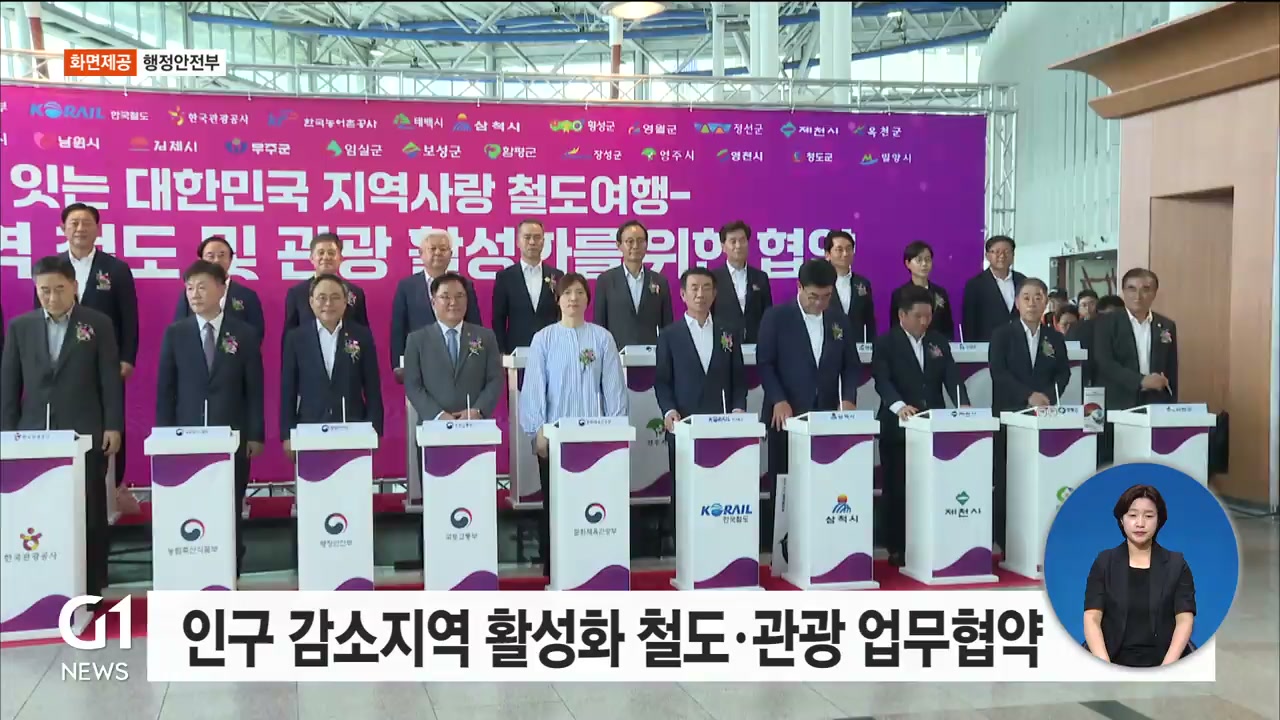 국토부와 행안부, 철도공사와 관광공사 등 정부 기관과 인구 감소세가 심각한 전국 지자체 23곳은 어제(16일) 철도 관광 활성화를 위한 업무협약을 체결했습니다.