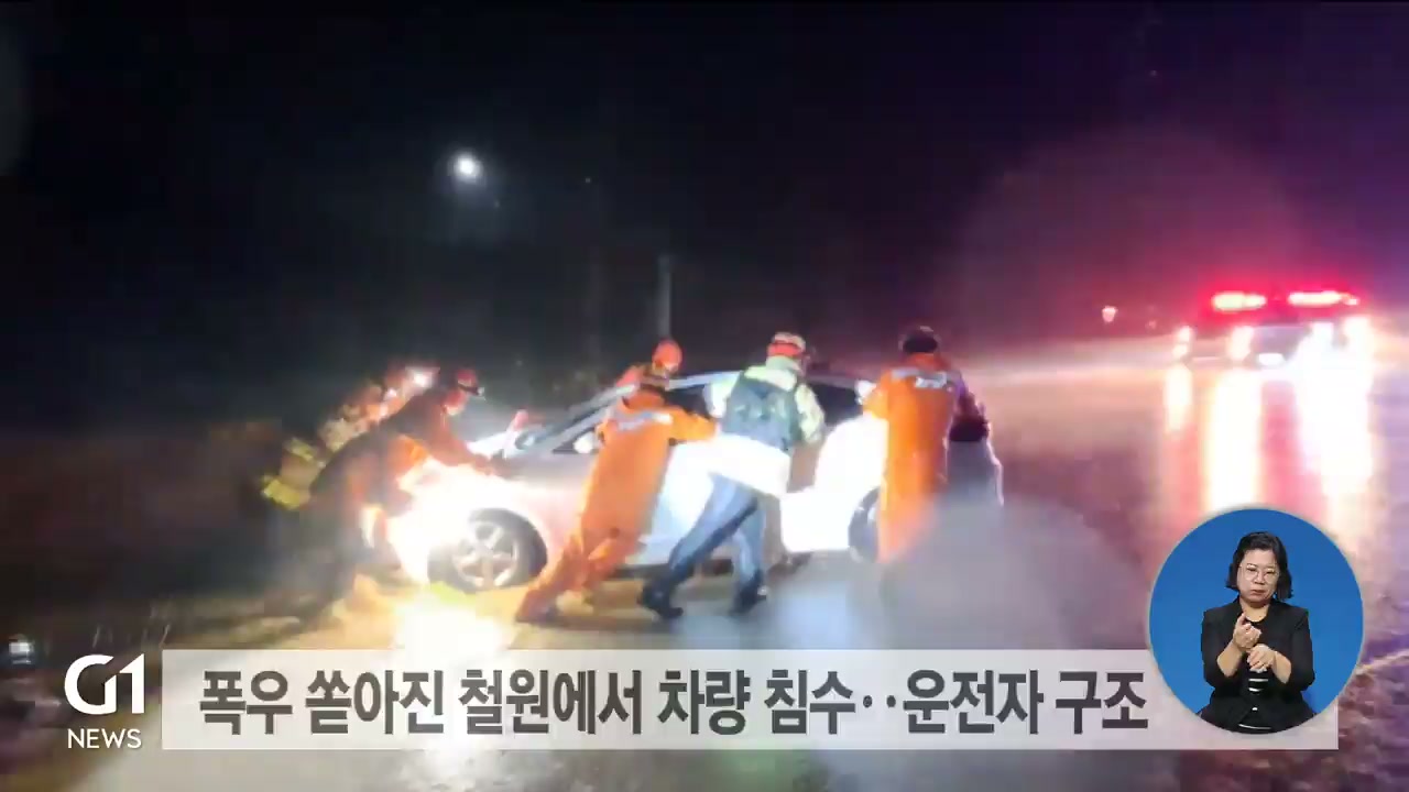 폭우 쏟아진 철원에서 차량 침수..운전자 구조