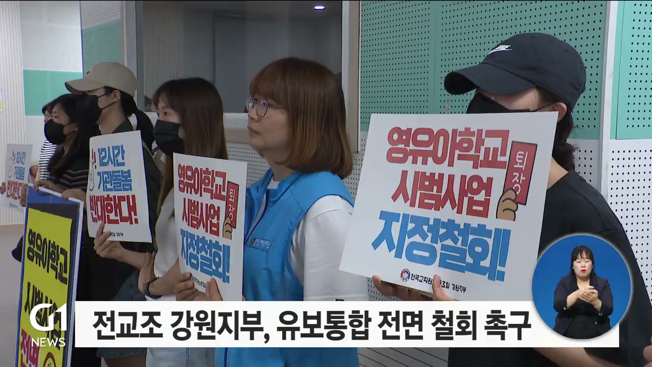 강원자치도교육청이 내년부터 시행될 예정인 유보통합에 앞서 시범사업에 나선 가운데 전국교직원노동조합 강원지부가 정책 철회를 촉구하고 나섰습니다.