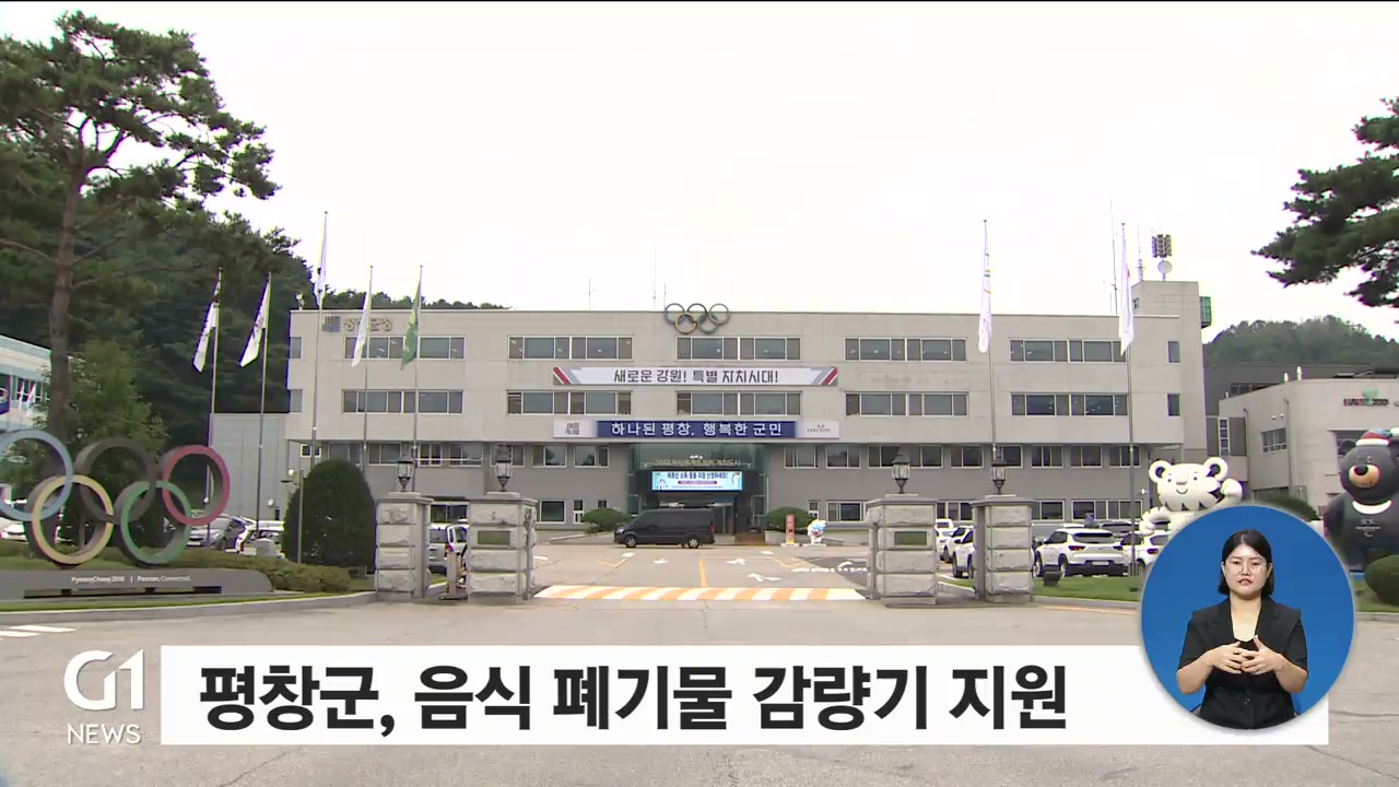 평창군이 음식 폐기물 감량기 구입 금액을 지원합니다.