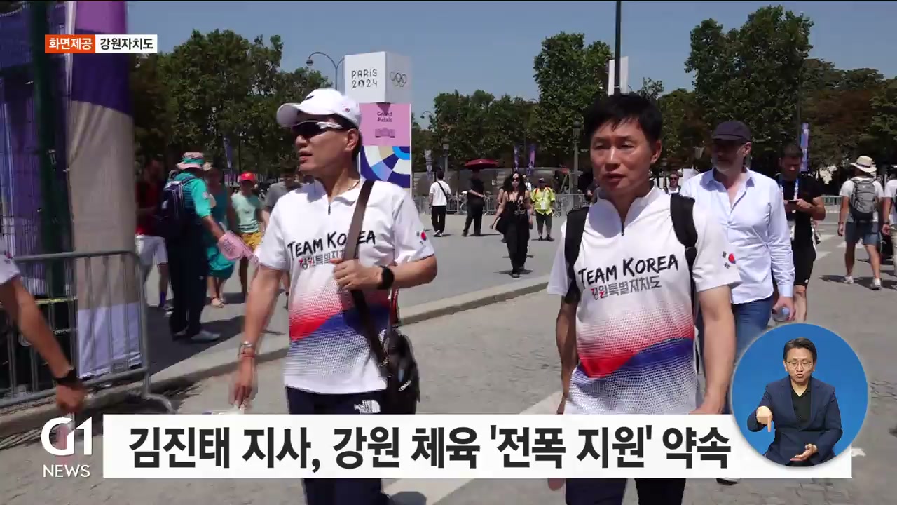 파리에서 강원 선수들을 격려하기 위해 응원전을 펼친 김진태 지사가 수영을 비롯한 강원 체육을 전폭 지원하기로 했습니다.