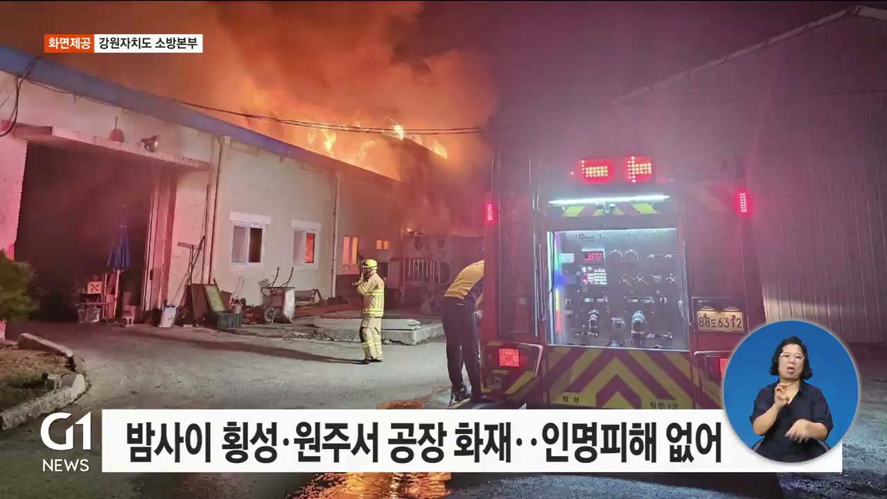 밤사이 횡성·원주서 공장 화재..인명피해 없어