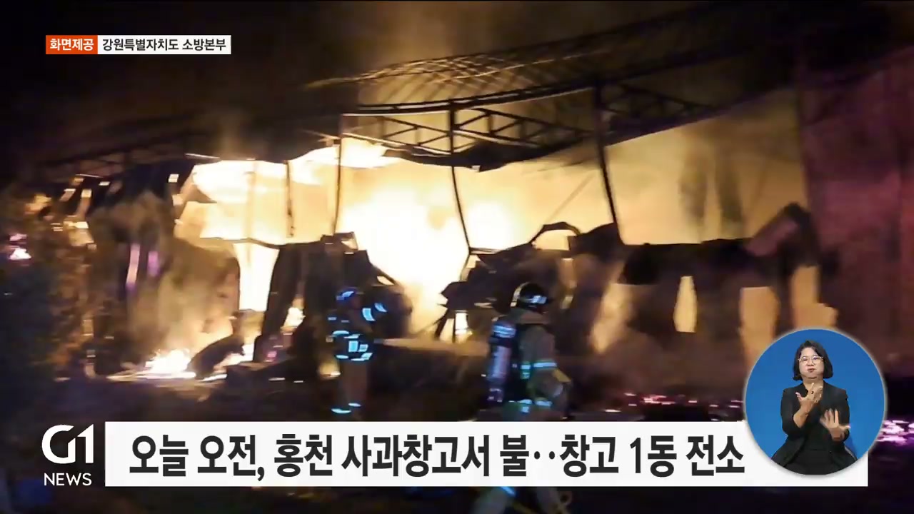 오늘 오전, 홍천 사과창고서 불..창고 1동 전소