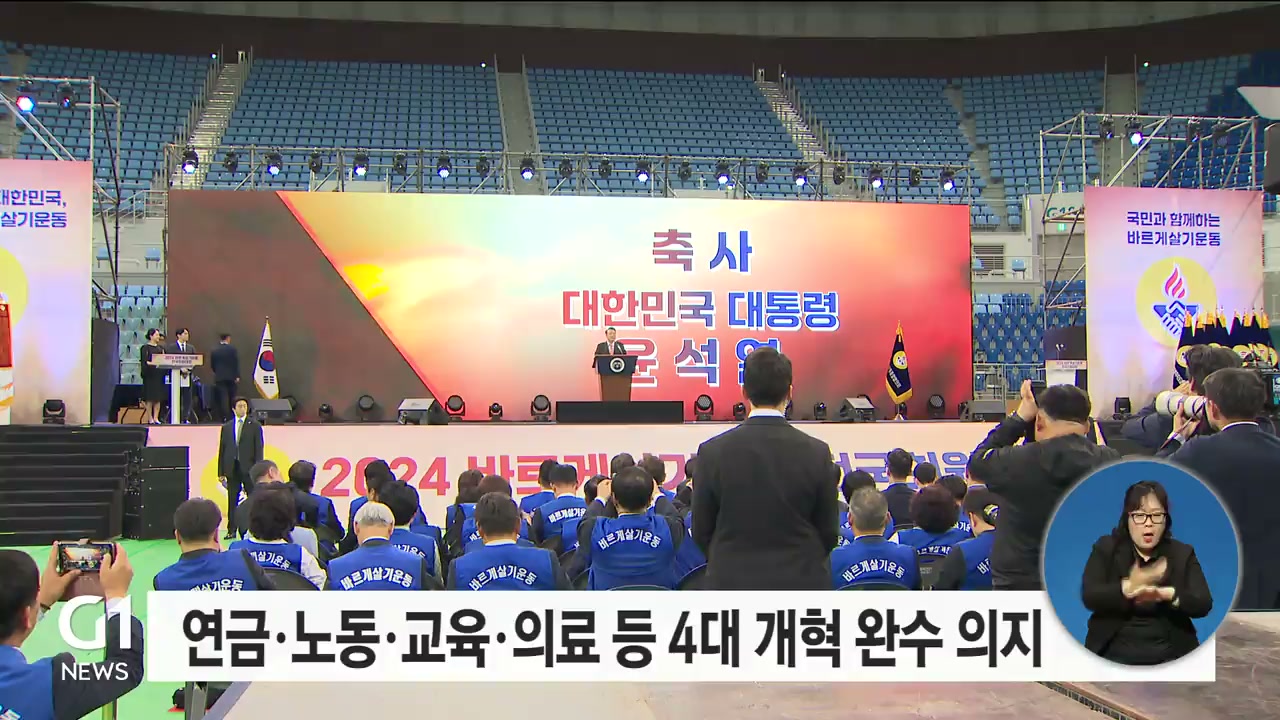 윤 대통령은 사회적 난제 해결과 4대 개혁에 대한 의지를 다시 한번 밝혔습니다.