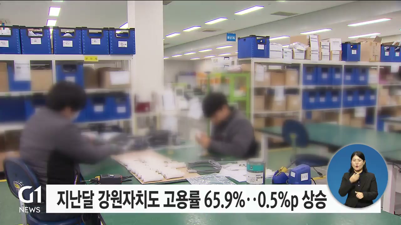 강원지방통계지청이 발표한 '9월 강원자치도 고용동향' 자료를 보면, 고용률은 65.9%로 지난해 같은 기간보다 0.5% 포인트 올랐습니다.