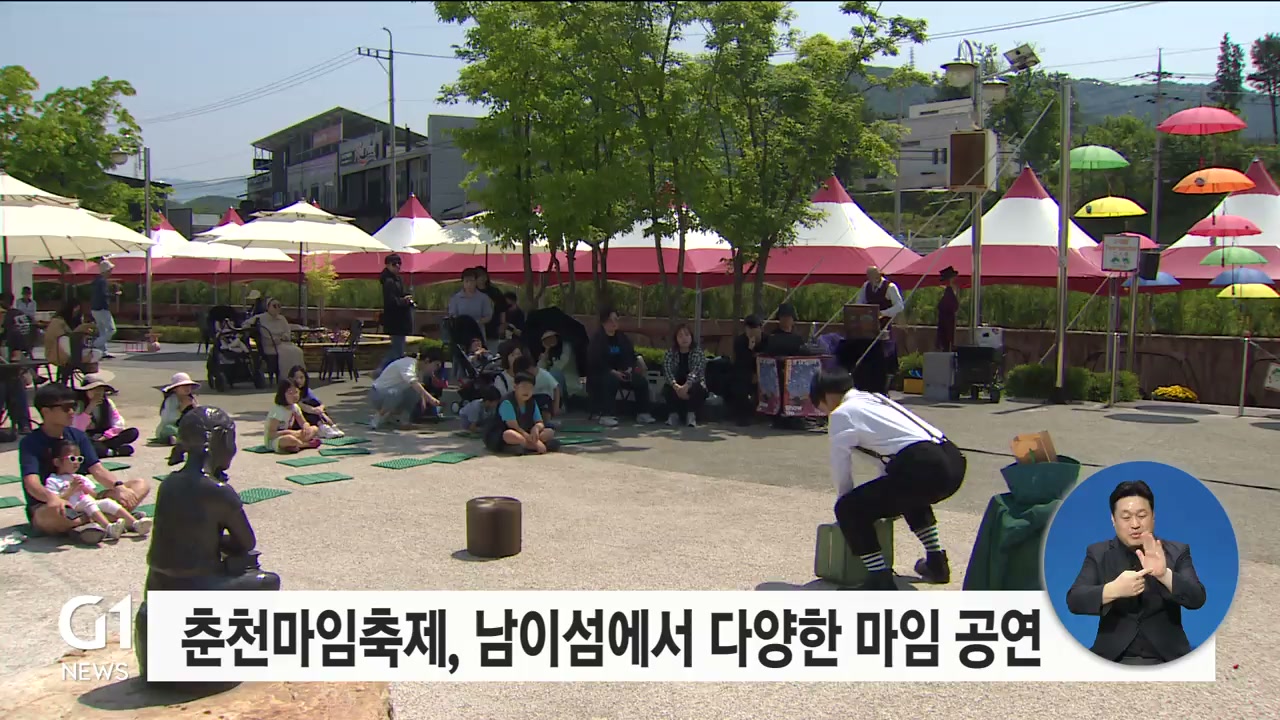 춘천마임축제는 내일(26일)부터 이틀간 남이섬 달오름 일대에서 '춘천마임축제 온 남이섬 플로팅 아일랜드'를 열고 다채로운 공연을 선보입니다.